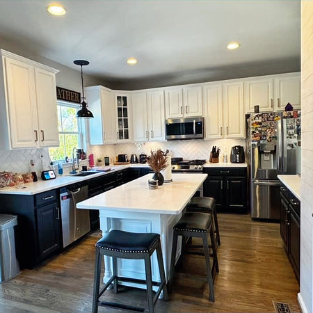This project was a fun one! It was a push present for the wife of the home as they were expecting to grow their family! I was happy to be a part of this transformation and who can go wrong with such beautiful contrast. Note the gold handles to complete the look.